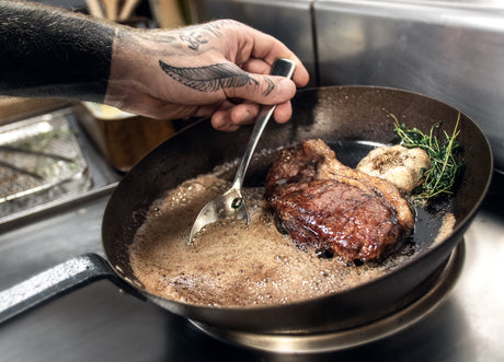 En rejäl och hållbar stekspade i rostfritt stål med ett ergonomiskt handtag i SAPELE-trä. Handtaget har en skyddande lack som gör att stekspaden tål maskindisk. Perfekt för användning på större stekhällar.